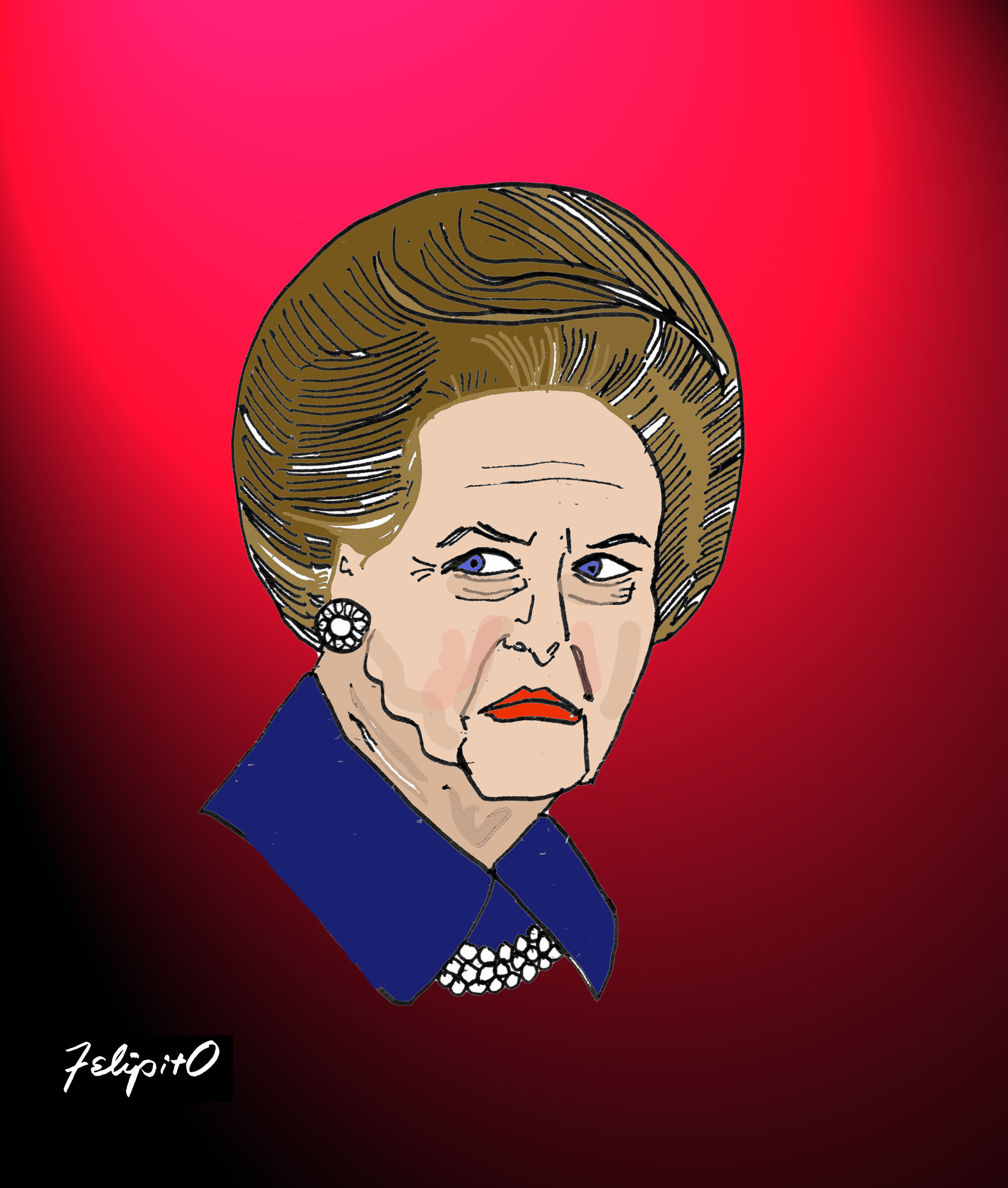 I looked up. It was Margaret Thatcher, the former Prime Minister.